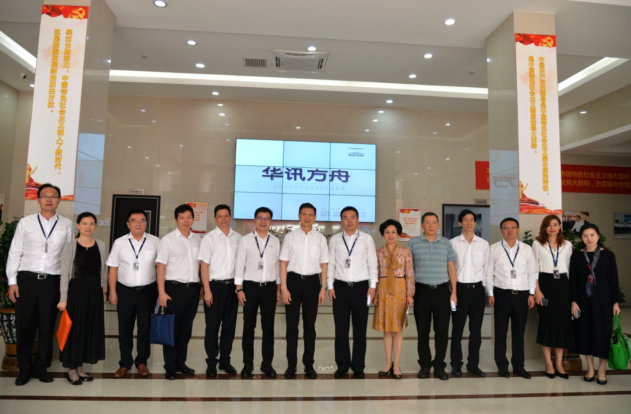 9月22日,中央統戰部副部長、全國工商聯黨組書記、常務副主席徐樂江一行調研華訊方舟集團發展情況,集團董事長吳光勝、CEO范虎、常務副總裁馮軍正、高級副總裁駱睿、副總裁卞沆及上市公司總經理張沈衛等領導給予熱情接待。